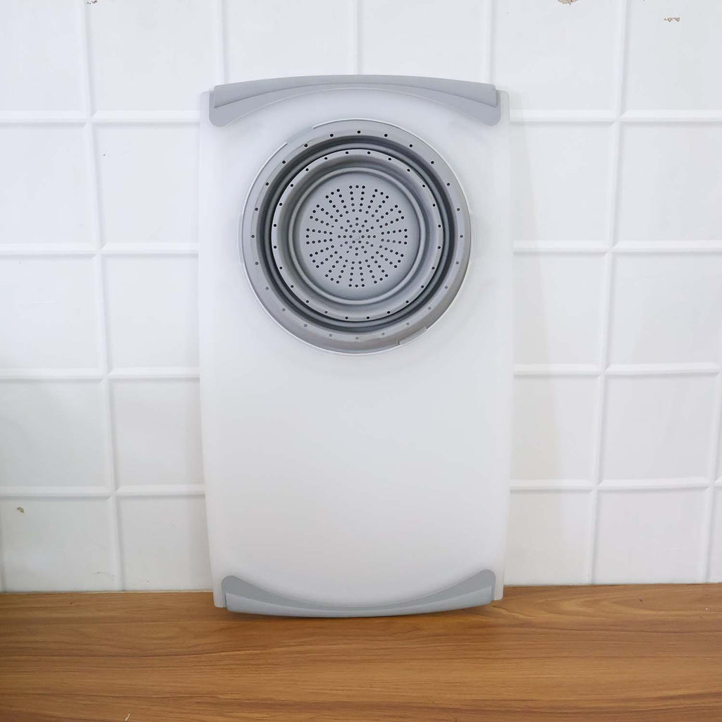 2-in-1 Design: Full-size chopping board paired with a collapsible strainer for wash-and-prep efficiency.