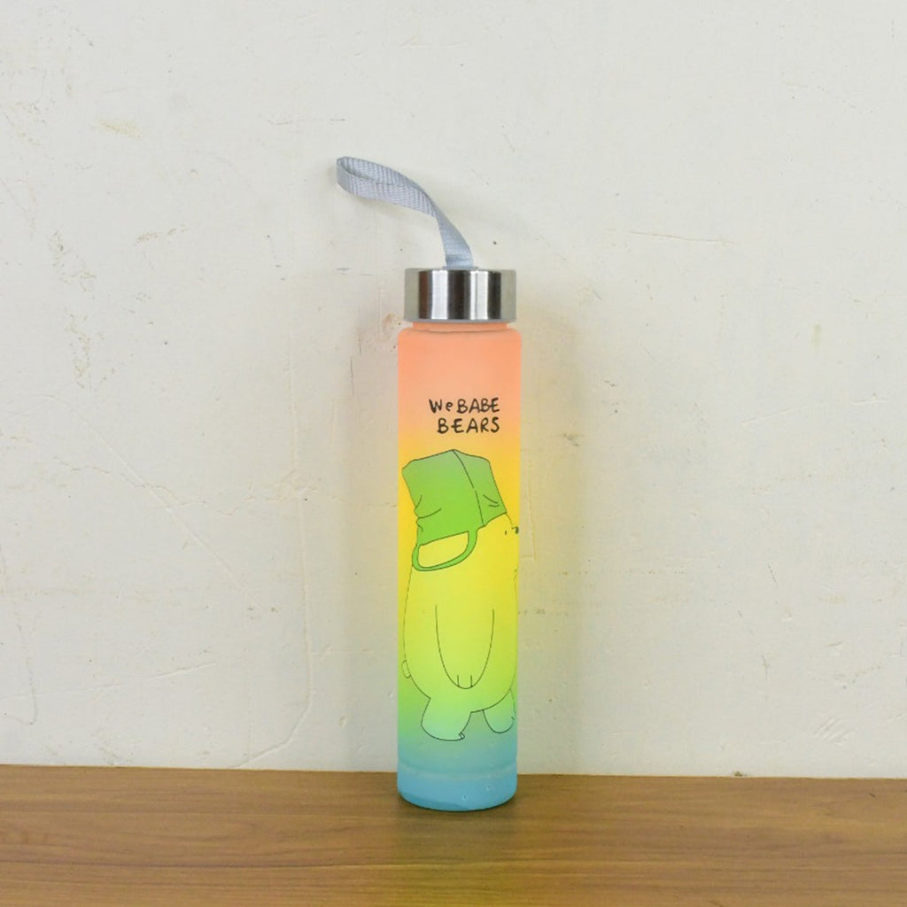 cartoon water bottle, printed water bottle, gradient water bottle, bear design bottle, cute water bottle, stylish drinking bottle, slim water bottle, portable bottle with strap, kids cartoon bottle, decorative water bottle,gift water bottle,hydration bottle,leak-proof drinking bottle, portable water container