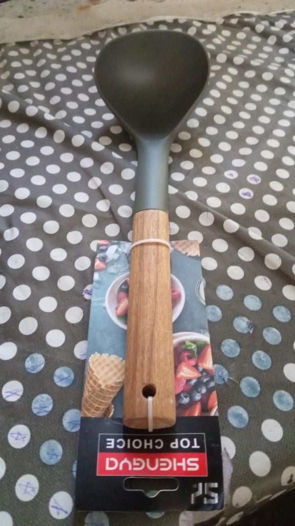 - Wooden Handle: This Plastic soup ladle & Skimmer adopts a wooden handle that ensures comfortable and nonslip grip. Perfect for mixing, folding, serving, spreading, scraping, and flipping.